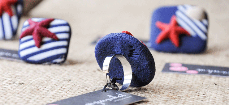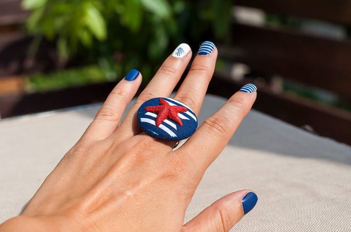 V prstane oblikovalke Tjaše Vodeb smo se zaljubili na prvi pogled. Tako simpatični, da bi jih nosili non-stop. Unikatni prstančki so narejeni ročno iz polimerne gline (Fimo mase). Za našo škatlico je oblikovalka pripravila prstane z morskim oz. mornarskim motivom. Vsakič, ko vam bo pogled ušel na roko, vas bodo misli popeljale v brezskbne dni, ki ste jih preživele na morju. Čudovito, kajne? Res so pravi sladkorčki.