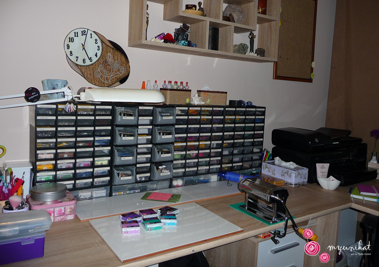 Naj ti povem, da večino časa v njem vlada kaos, ker ko ustvarjam, je na mizi, pod mizo in vsepovsod naokoli še tisoč in ena stvar. Včasih se čudim sama sebi, kako sploh še kaj najdem. Ampak, še težje je najti, ko vse pospraviš, zato si občasno vzamem čas in vse uredim.