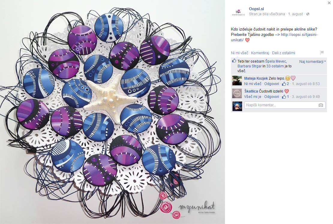 Včerajšnje jutro je bilo nekaj posebnega! Za prijetno presenečenje je poskrbela Urška, saj je na Oopsi.si objavila intervju z mano! Zelo sem VESELA, da moje delo opazijo tudi drugi! :) Hvala, Urška!