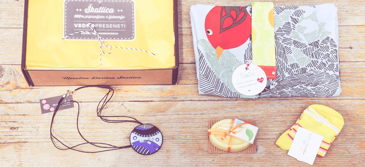 Tokrat posebna novost – Škatlica za MALČKE, s katero lahko razveselite in razvajate vse, ki so že postale mamice in vse tiste, ki to še bodo! V njej so unikatni izdelki, slovenskega porekla in slovenskih oblikovalcev. Izbereš lahko škatlico za punčko ali fantka.