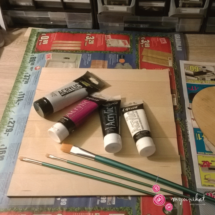 Izbrala sem barve in potem je bil končno na vrsti moj najljubši del – barvanje deščic.