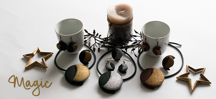 Kolekcija Magic je sestavljena iz dveh polkrogov, ki se prekrivata in sta obrnjena drug proti drugem, ter se tako povežeta v celoto. Spodnji enobarven – črn ali rjav polkrog, predstavlja tvojo preteklost, ki je ne moreš več spremeniti, ostaja taka kot je in prav zaradi nje, si danes to kar si in tukaj kjer si! A v tem trenutku lahko spremeniš tvojo sedanjost in prihodnost, kot si želiš sama in bo zapisana v»žarečem« Magic silver in Magic gold polkrogu.