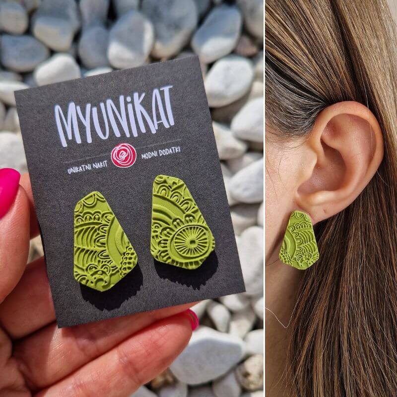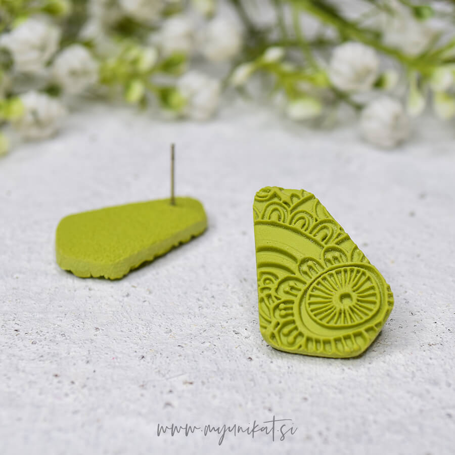 – ročno so izdelani iz FIMO mase, imajo 3d odtis ter mat efekt/teksturo na zadnji strani