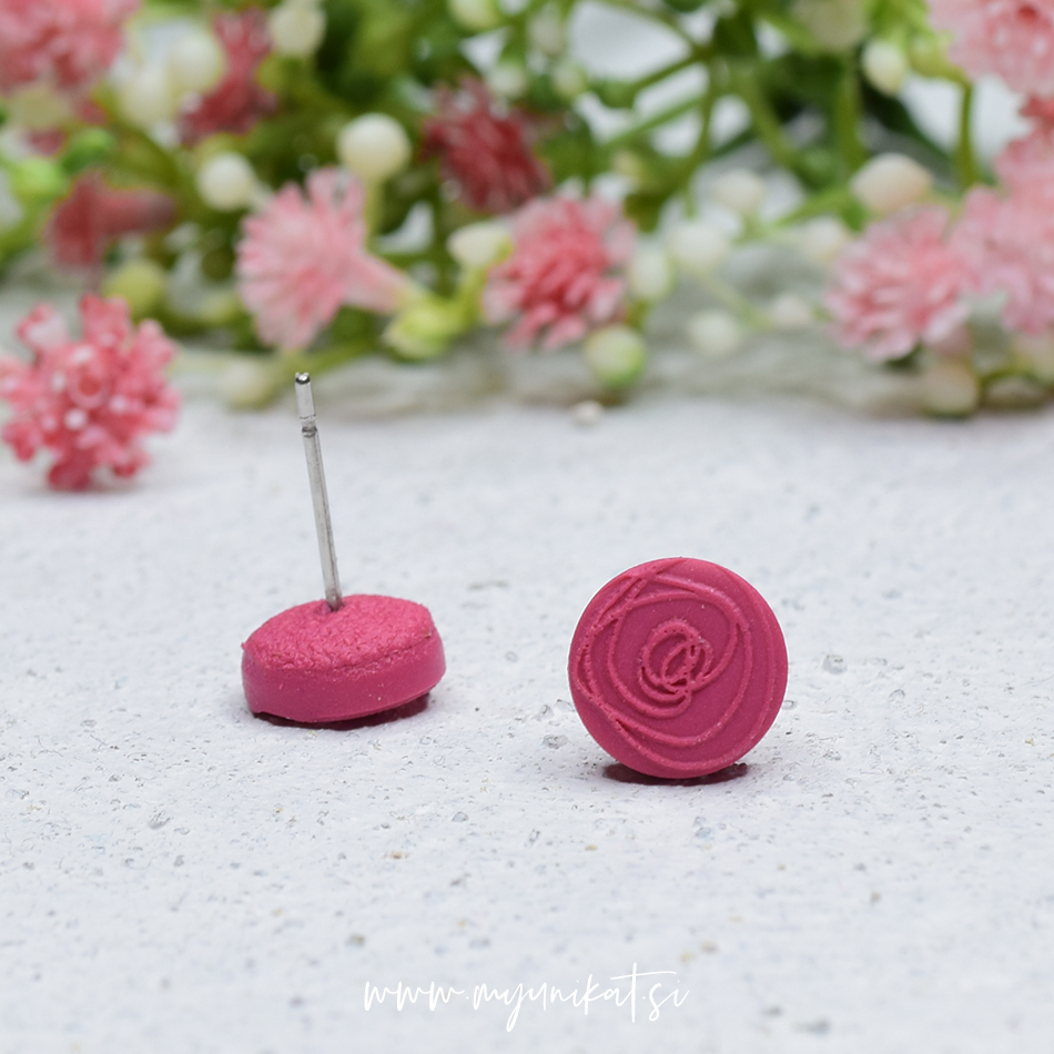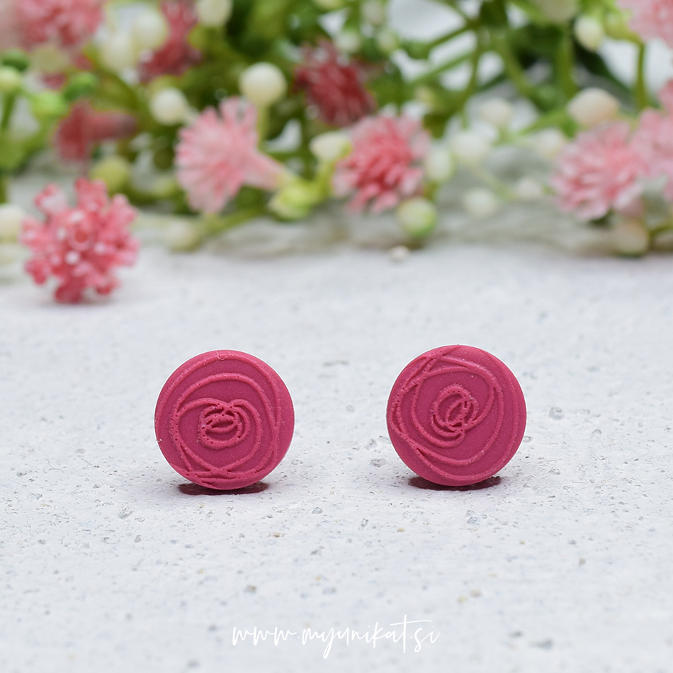 – uhančki so ročno izdelani iz FIMO mase // spredaj imajo odtis Myunikat rožice, zadaj mat efekt/teksturo