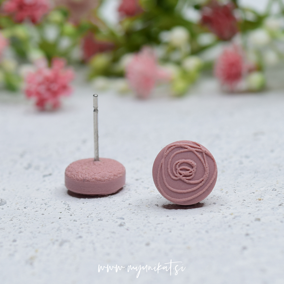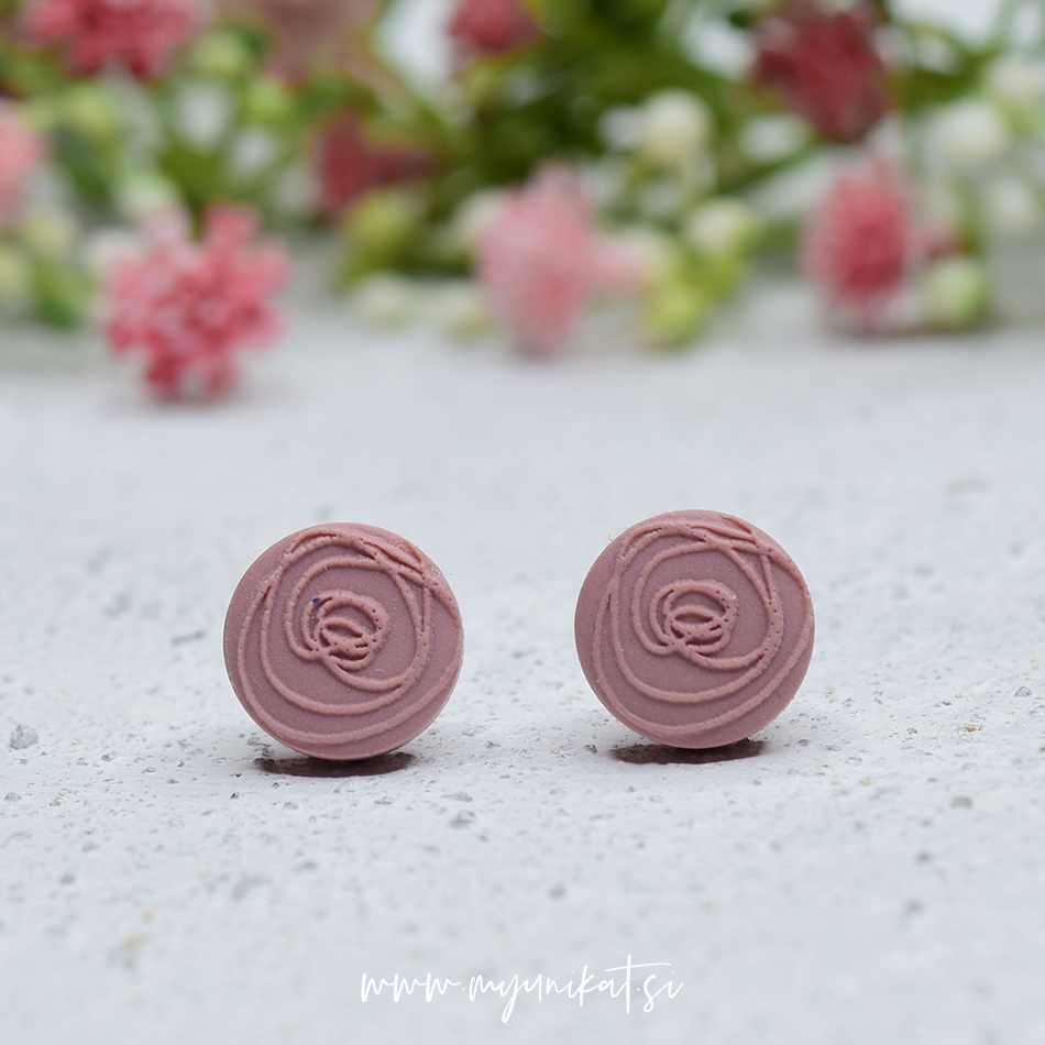 – uhančki so ročno izdelani iz FIMO mase // spredaj imajo odtis Myunikat rožice, zadaj mat efekt/teksturo