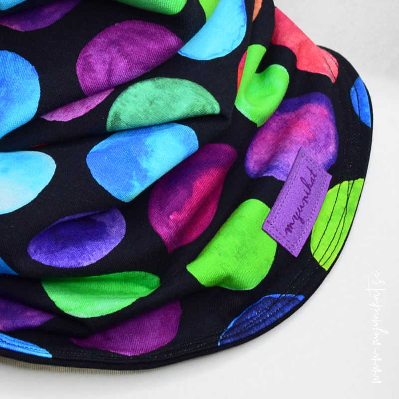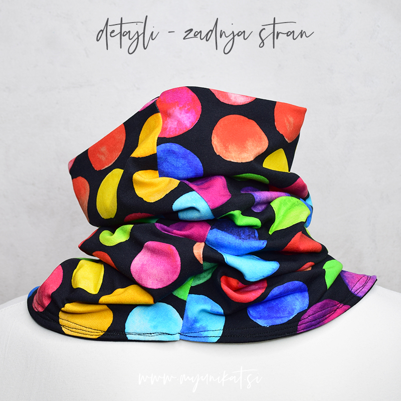 ZUNANJOST (95% bombaž, 5% elastan) – črna osnova, velike pisane pike