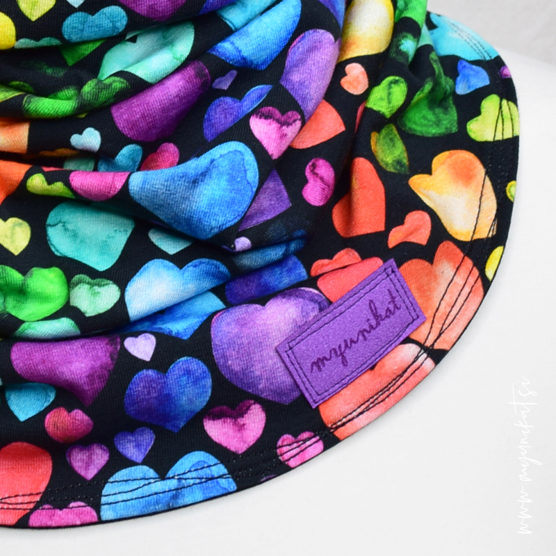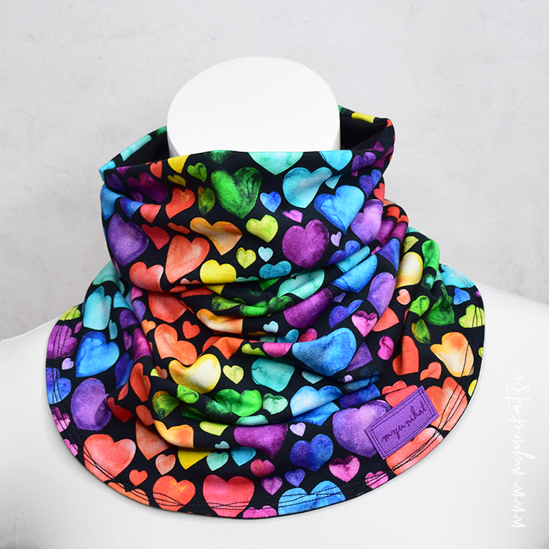 ZUNANJOST (95% bombaž, 5% elastan) – črna osnova, pisani srčki