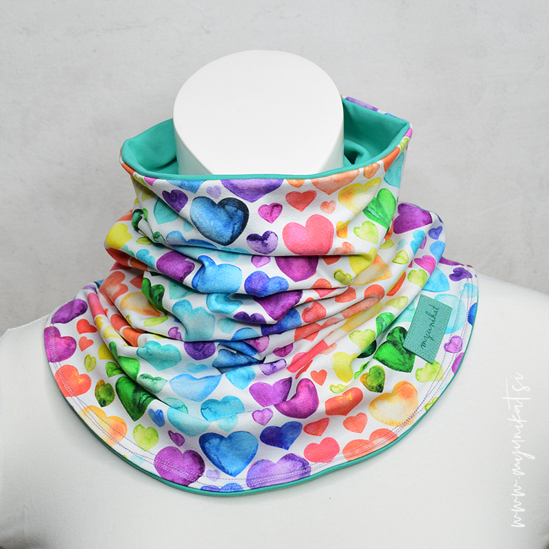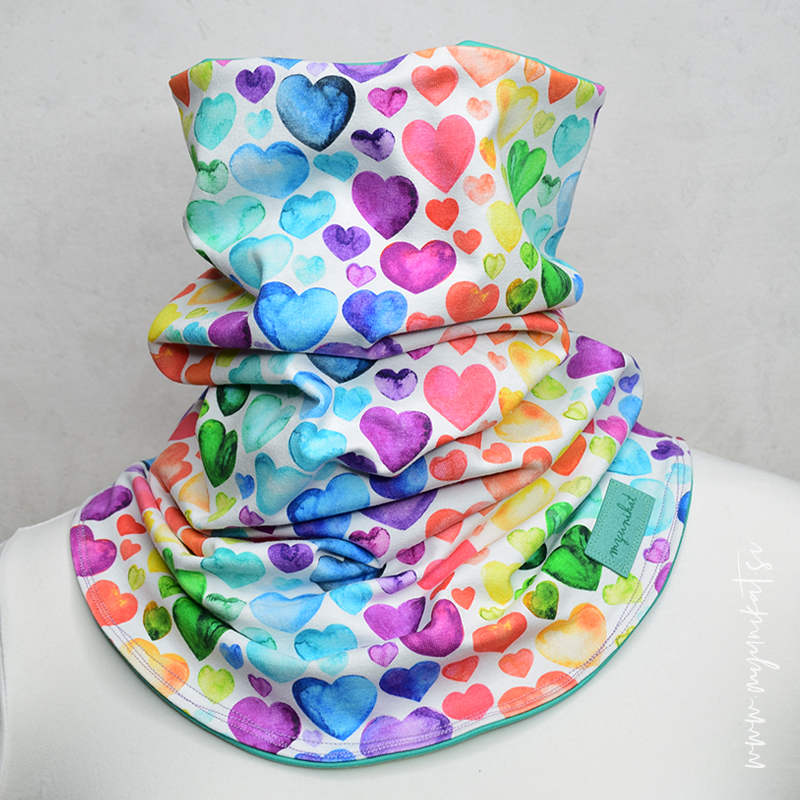 je podaljšana tuba, ki si jo nadenemo preko glave. Tuba je zadaj krajša in spredaj daljša, da nam lepše stoji ob vratu. Ker je daljši, s prijetnega in udobnega materiala, se ta lepo naguba ob vratu. Nudi nam kar nekaj možnosti različnega nošenja, saj lahko njegove robove poljubno zavihamo/odvihamo. Po želji ga lahko nosimo tudi obojestransko. - VELIKOST tuba šala (merjen je obseg najožjega, a raztegljivega dela)