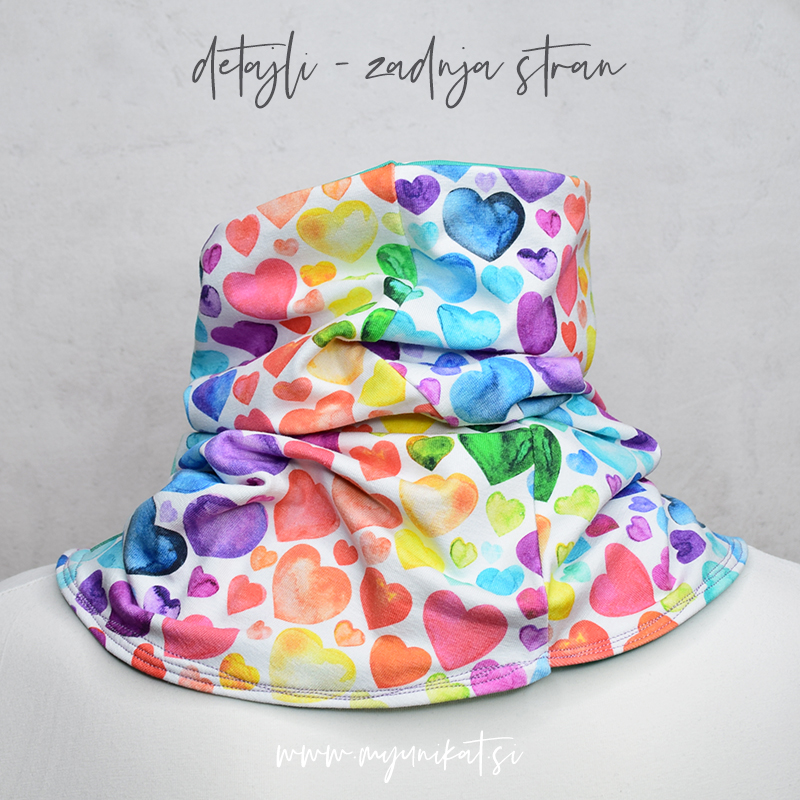 – velikost M je med cca 53 – 54 cm, nato se šal razširi - BARVA in MATERIAL tuba šala