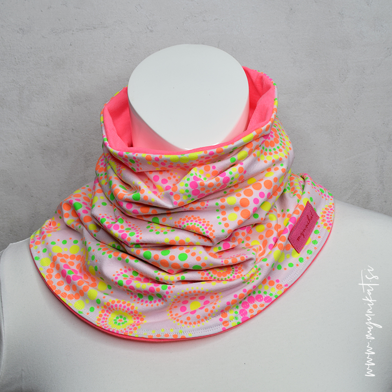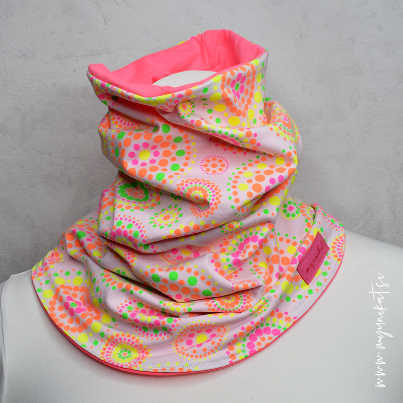 je podaljšana tuba, ki si jo nadenemo preko glave. Tuba je zadaj krajša in spredaj daljša, da nam lepše stoji ob vratu. Ker je daljši, s prijetnega in udobnega materiala, se ta lepo naguba ob vratu. Nudi nam kar nekaj možnosti različnega nošenja, saj lahko njegove robove poljubno zavihamo/odvihamo. Po želji ga lahko nosimo tudi obojestransko. - VELIKOST tuba šala (merjen je obseg najožjega, a raztegljivega dela)