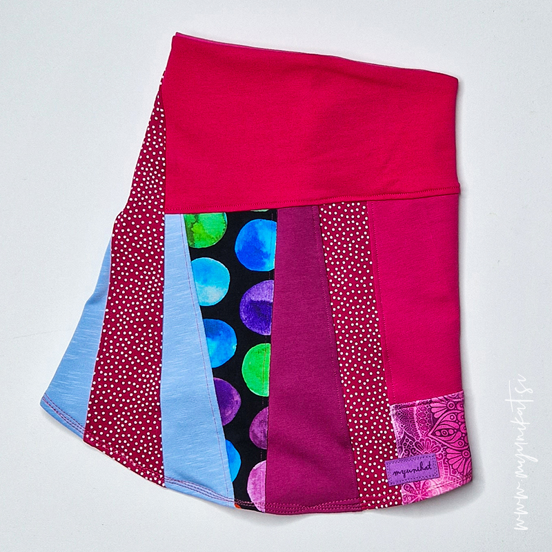 Šal je izdelan po mojem kroju, z različnih majhnih koščkov kakovostnega materiala, ki so abstraktno prešiti in imajo ogromno različnih detajlov. Izdelan je po Zero Waste principu, kar zahteva OGROMNO časa pri sami izdelavi.