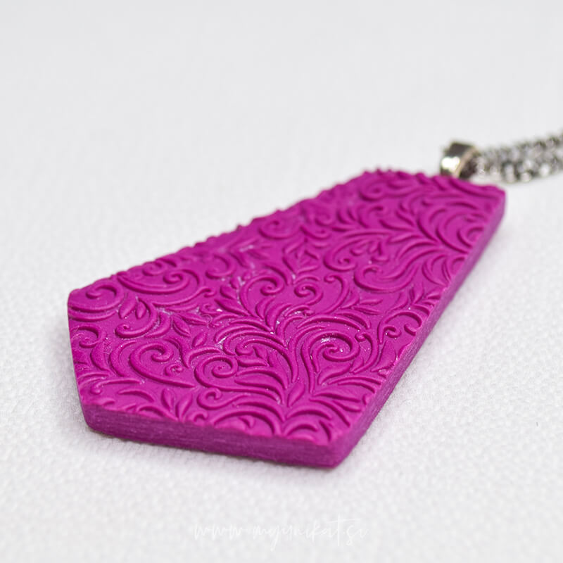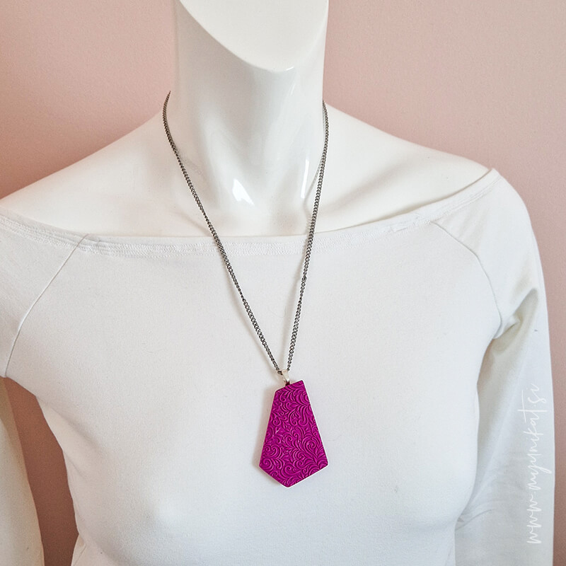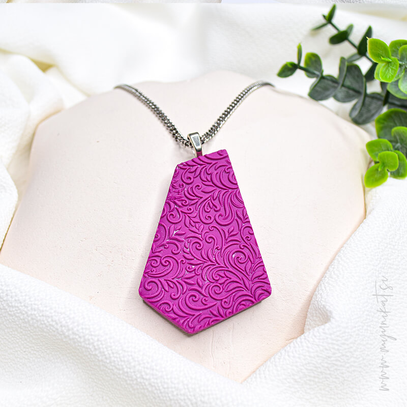 – ročno je izdelana iz FIMO mase, ima 3d odtis ter mat efekt/teksturo na zadnji strani