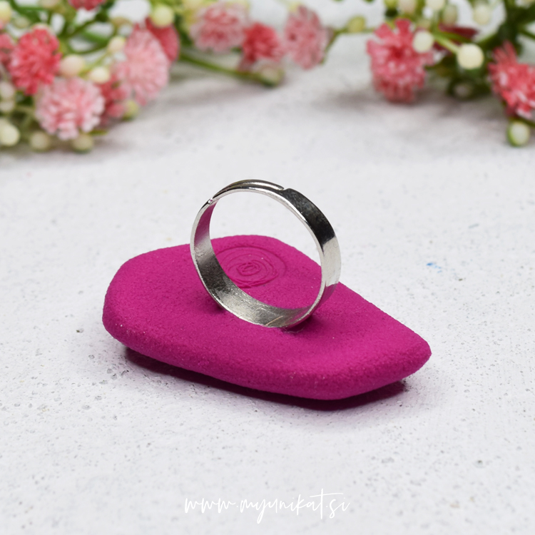 Simpl, enobarven prstan v roza (magenta) barvi je namenjen TEBI, ki imaš rada barvite in ročno izdelane modne dodatke. Ker je preprost, bo vedno znova dodal še zadnjo piko na i tvojemu pisanemu ali enobarvnemu stylingu.