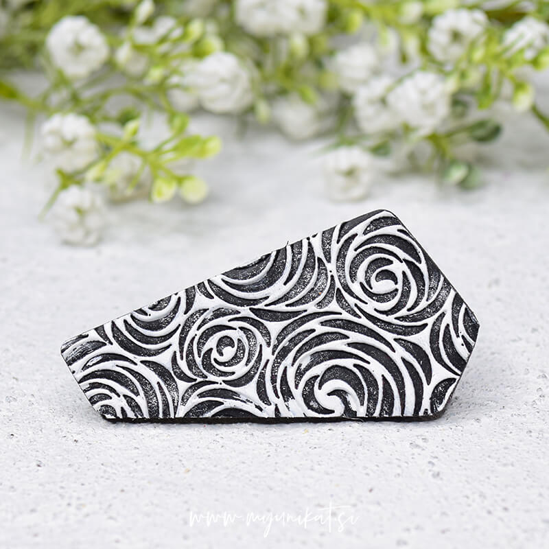 – ročno je izdelan iz FIMO mase, ima 3d odtis vrtnic ter mat efekt/teksturo na zadnji strani