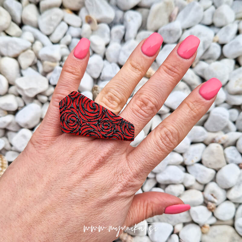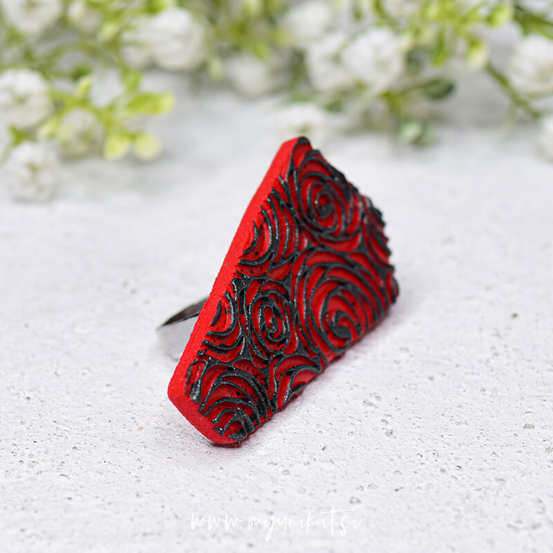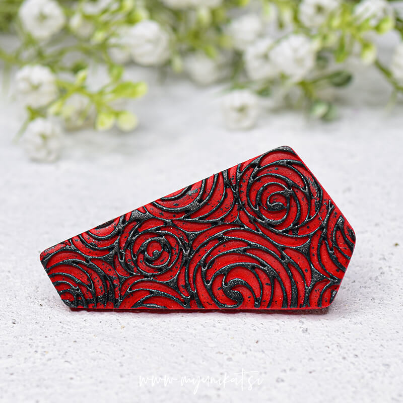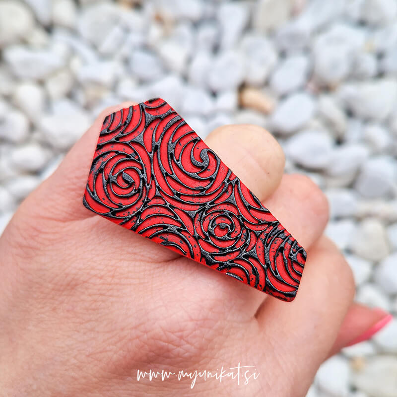 – ročno je izdelan iz FIMO mase, ima 3d odtis vrtnic ter mat efekt/teksturo na zadnji strani