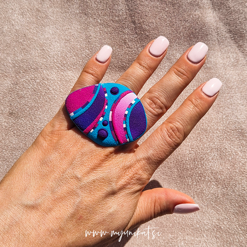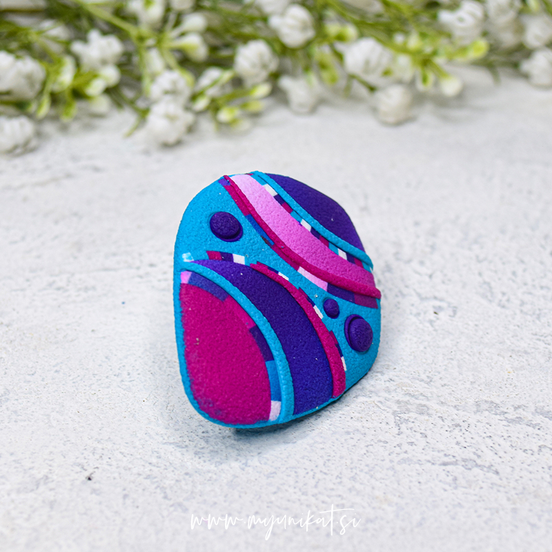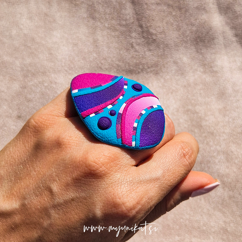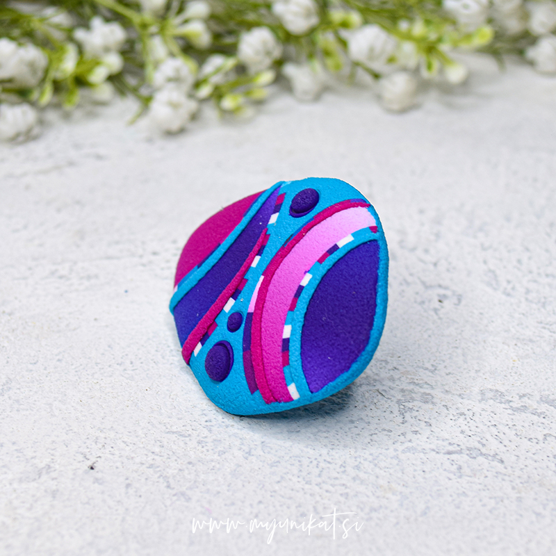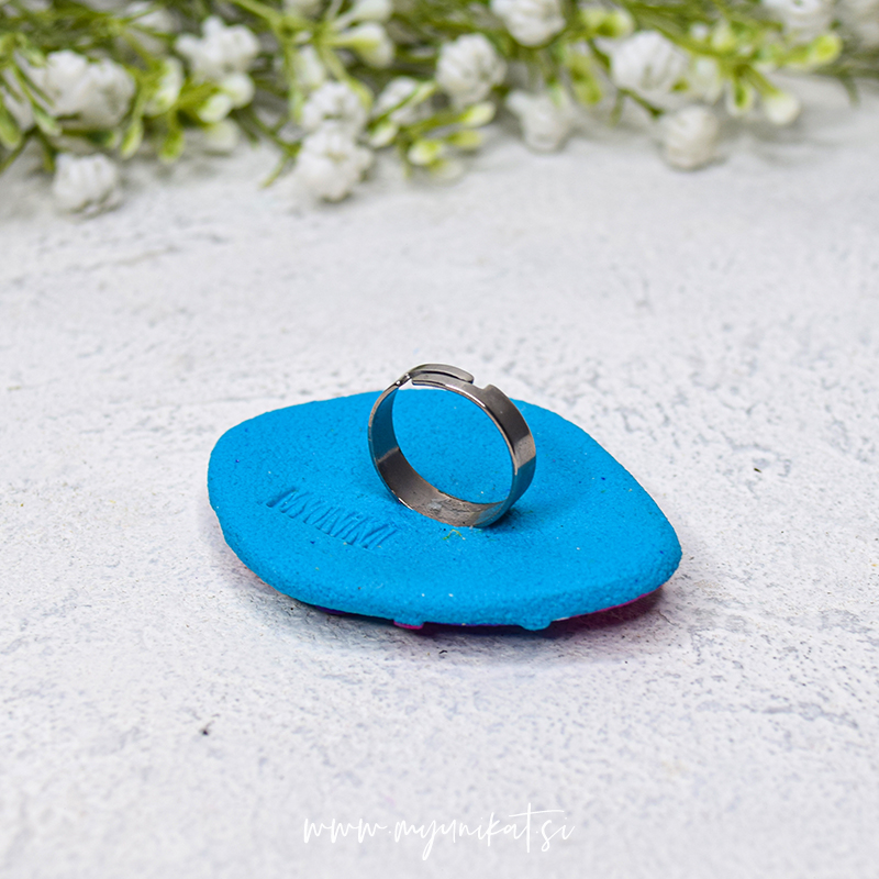 – viola, roza in turkizna barva prstana z mat teksturo (tudi na zadnji strani)