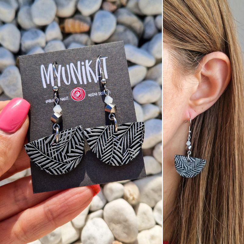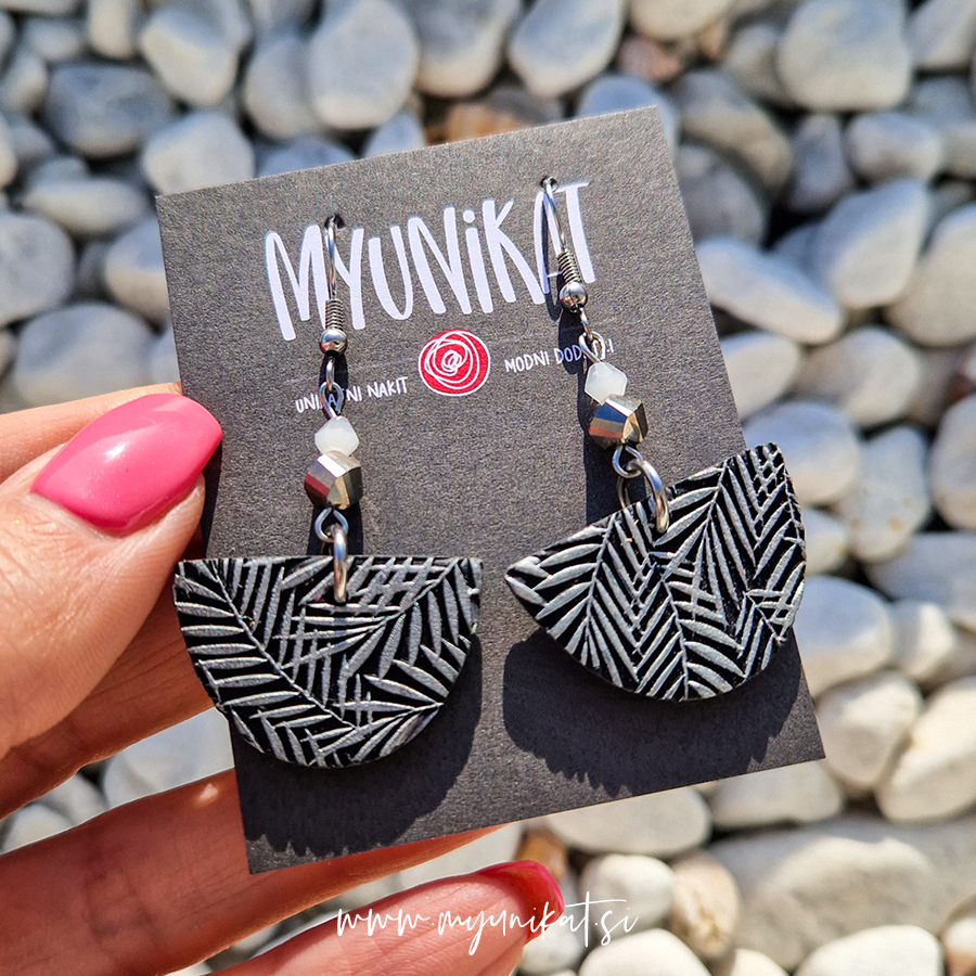 – ročno so izdelani iz FIMO mase & potiskani s srebrno barvo, ki ima rahlo perl efekt