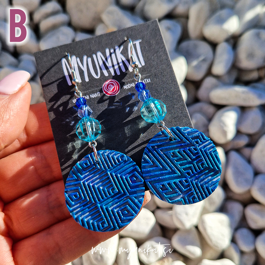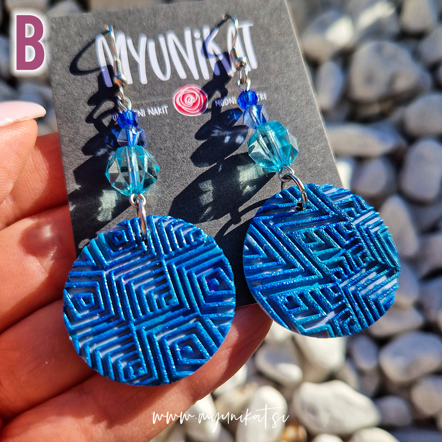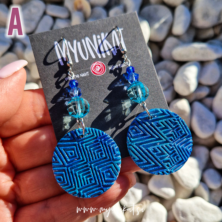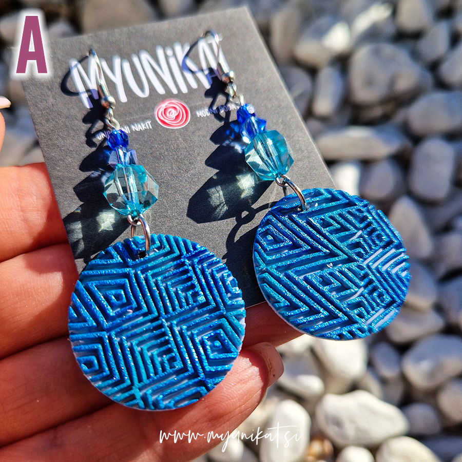 – ročno so izdelani iz FIMO mase & potiskani z modro barvo, ki ima rahlo perl efekt