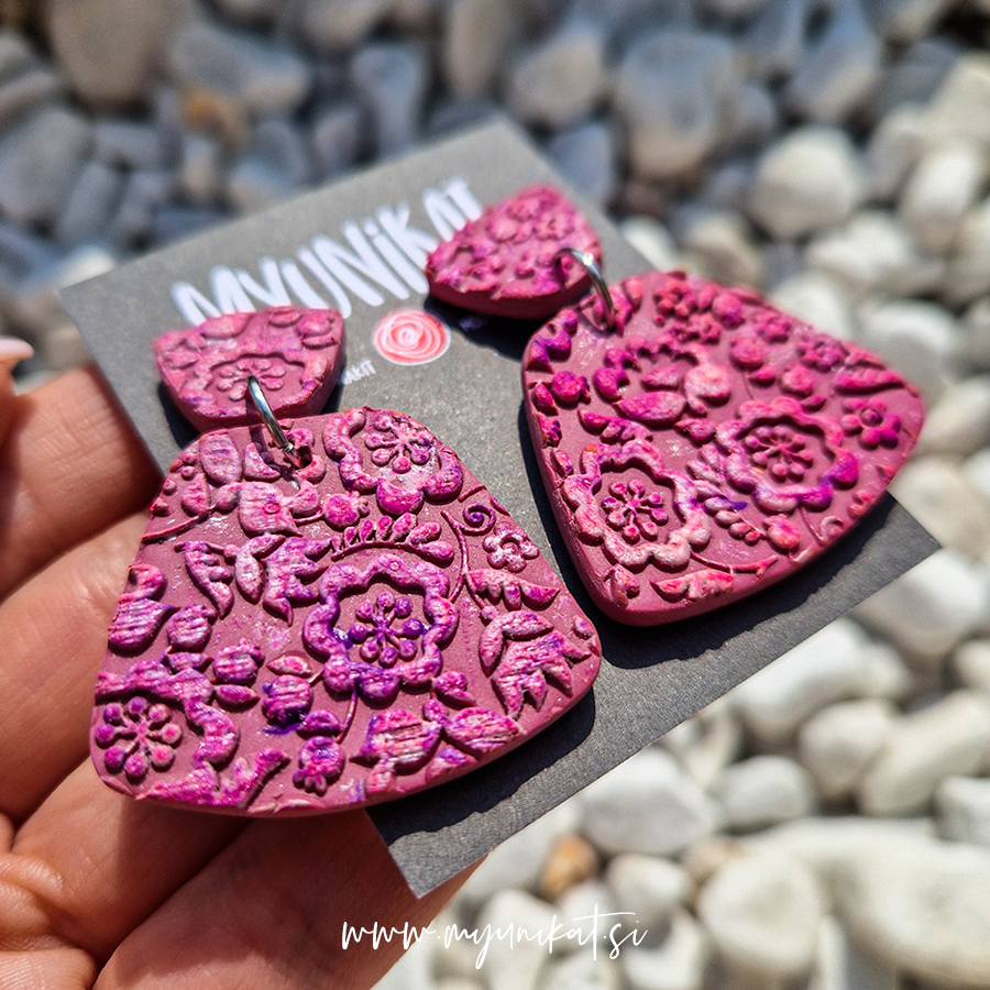 – celotnih uhanov – širina manjšega 2 cm, širina večjega 4 cm × celotna dolžina 5 cm - VZDRŽEVANJE unikatnih uhanov