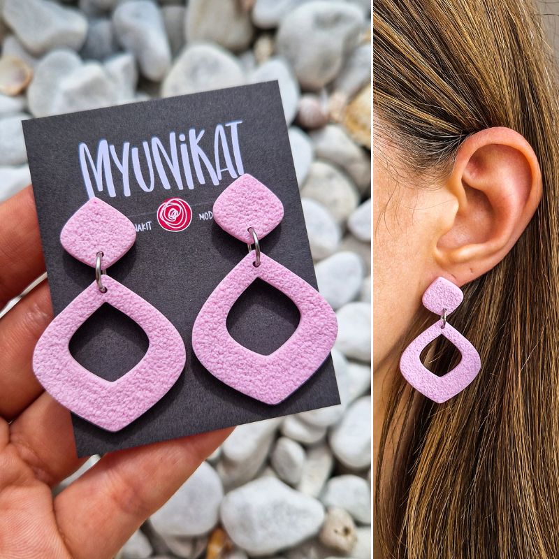 Ročno so izdelani iz FIMO mase in imajo mat efekt/teksturo. Primer nošenja uhančkov tudi v videu.