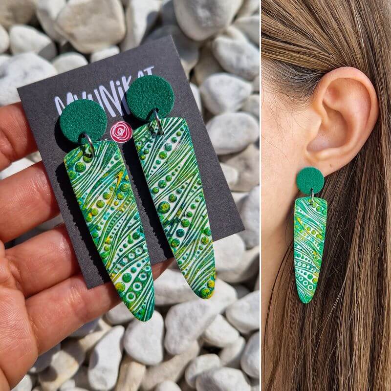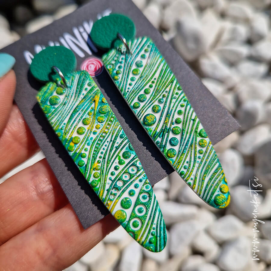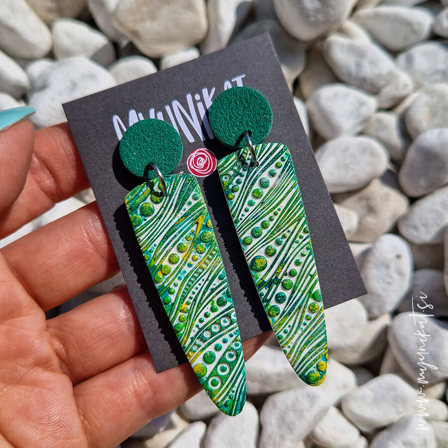 – zelena barva uhanov s 3d teksturo