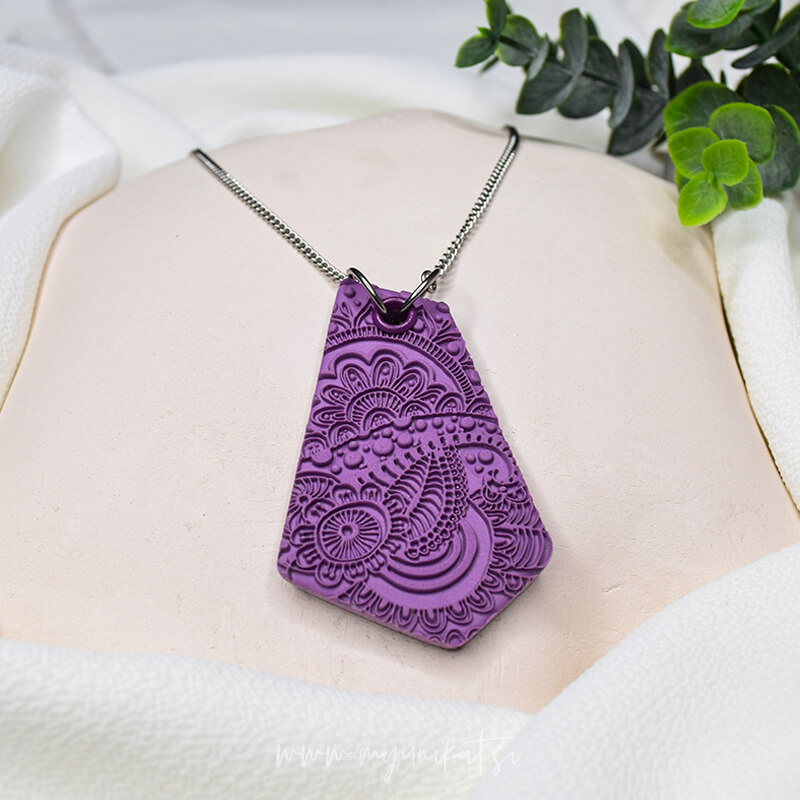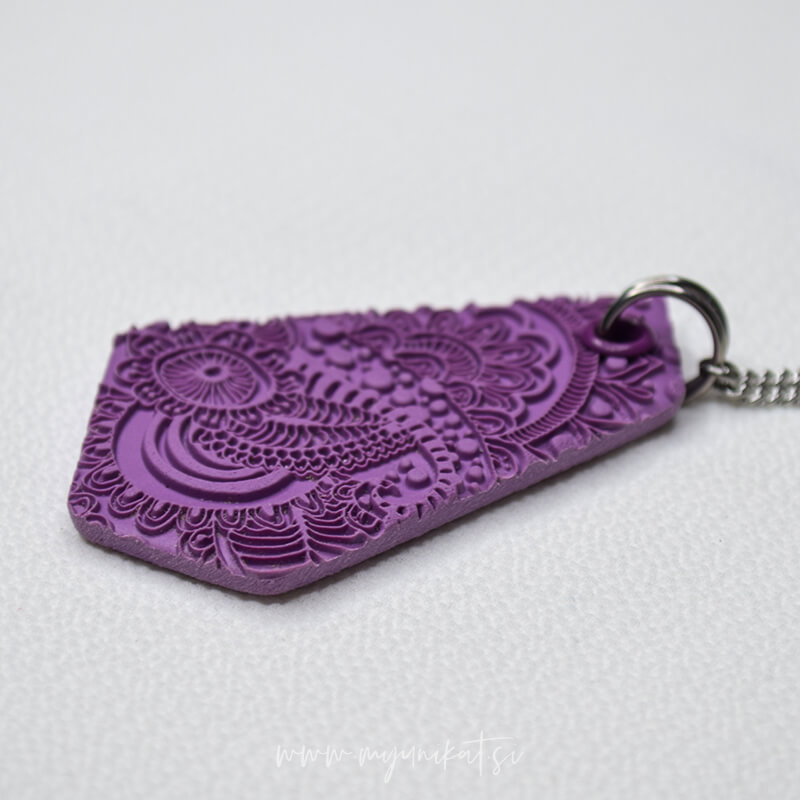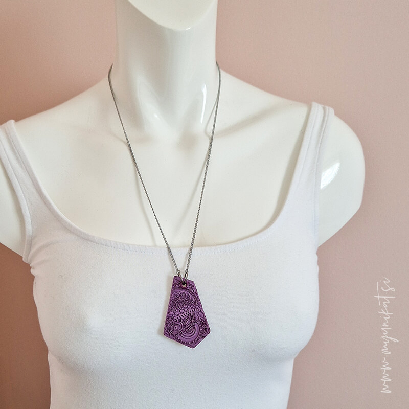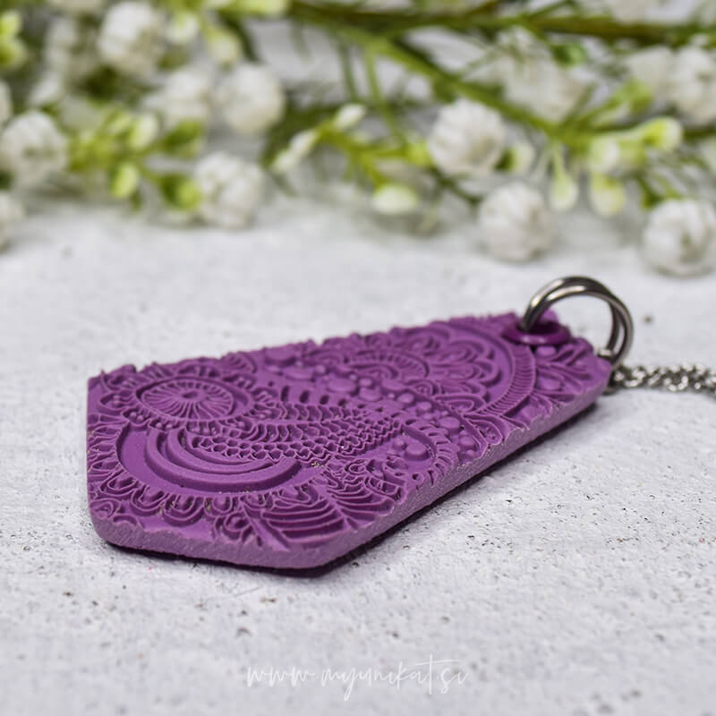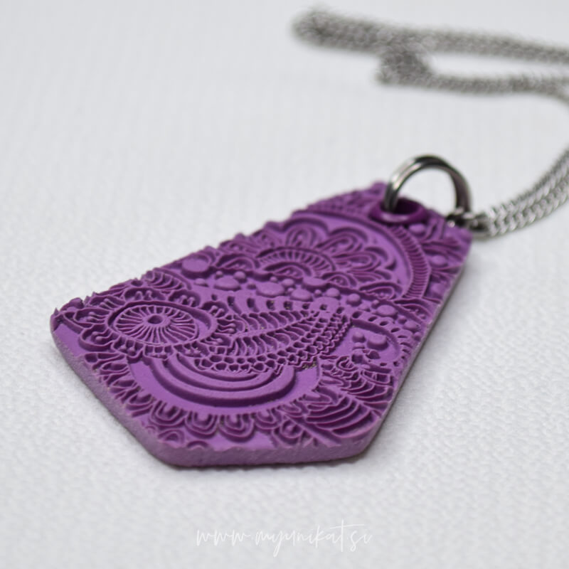 – ročno je izdelana iz FIMO mase, ima 3d odtis ter mat efekt/teksturo na zadnji strani