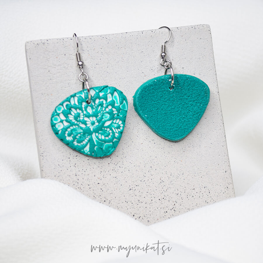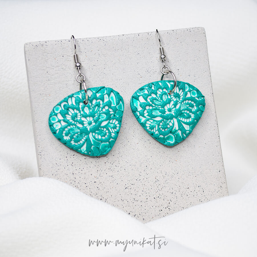 – ročno so izdelani iz FIMO mase, imajo odtis čipke ter mat efekt/teksturo na zadnji strani