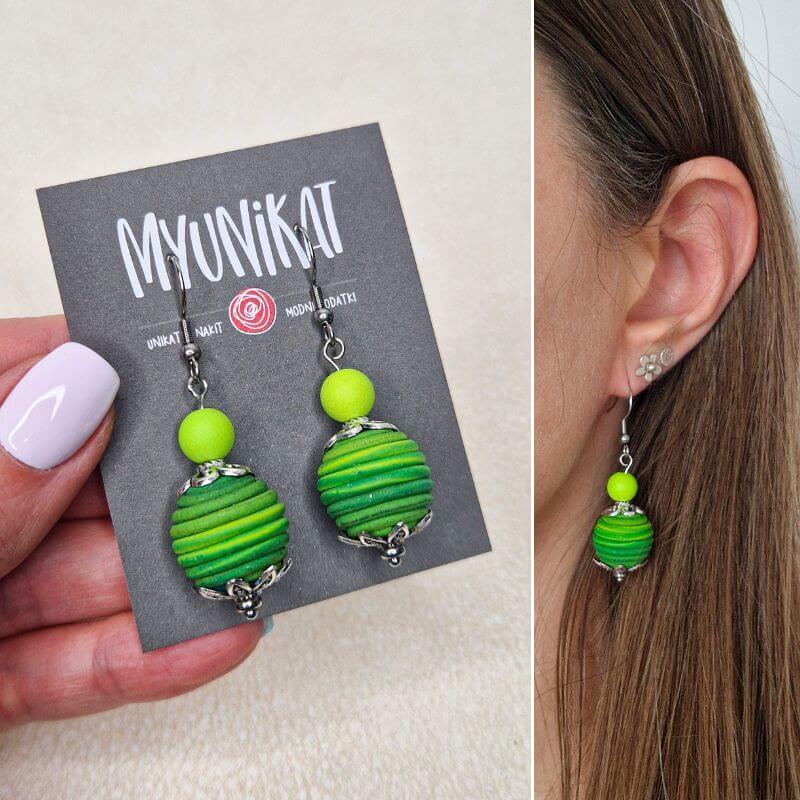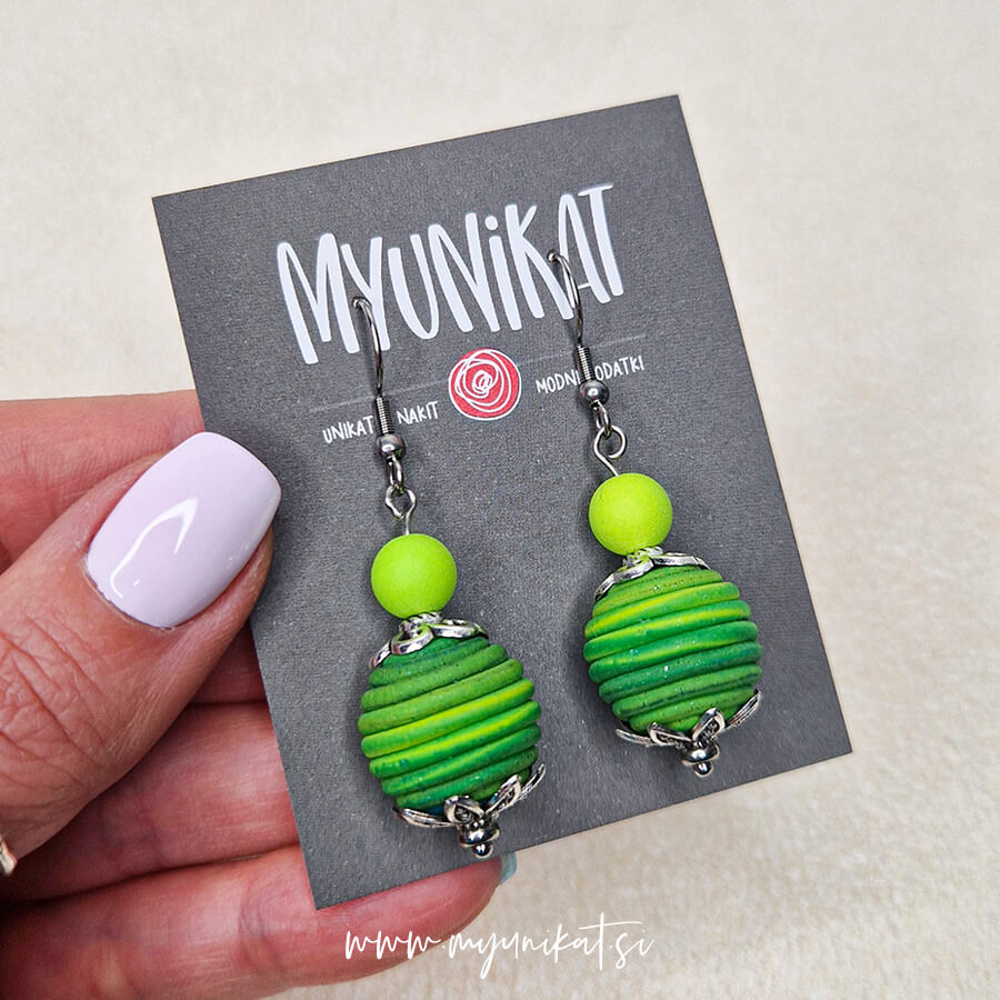 Viseči unikatni uhani | zelena